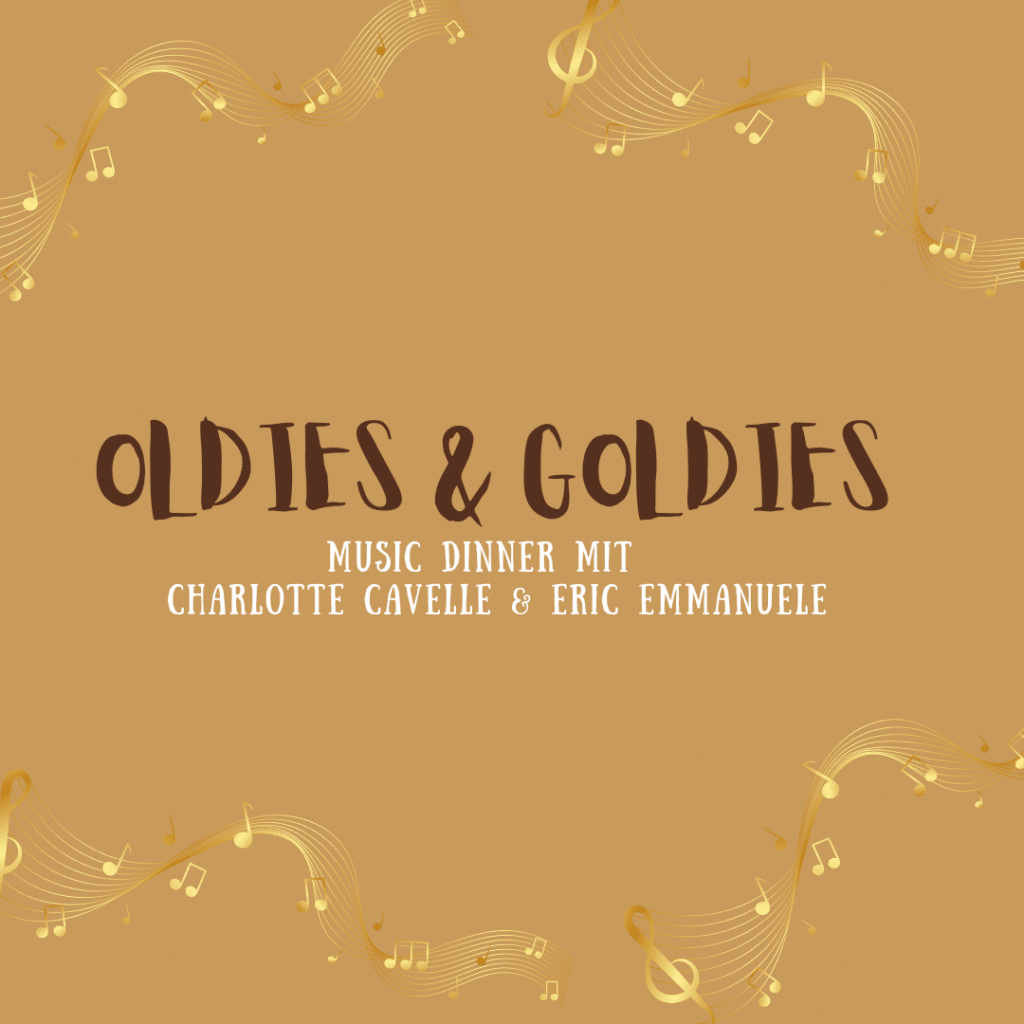 Erleben Sie einen Abend voller Nostalgie, Genuss und großer Songs! Bei diesem Music Dinner entführen Sie Charlotte Cavelle aus London und Eric Emmanuele aus New York auf eine musikalische Reise in die goldene Ära der 50er- und 60er-Jahre. Sie singen die unvergesslichen Klassiker von Frank Sinatra, Connie Francis, Dean Martin und vielen weiteren Stars dieser Zeit. Abgerundet wird der Abend durch ein passendes 3-Gänge-Menü, das kulinarische Highlights mit musikalischem Hochgenuss vereint.